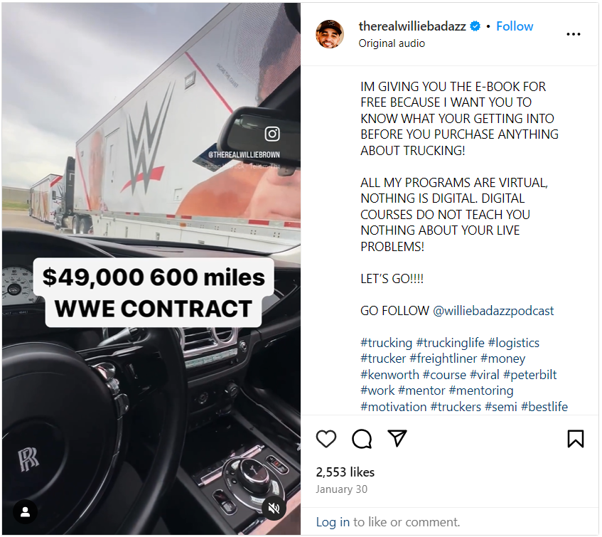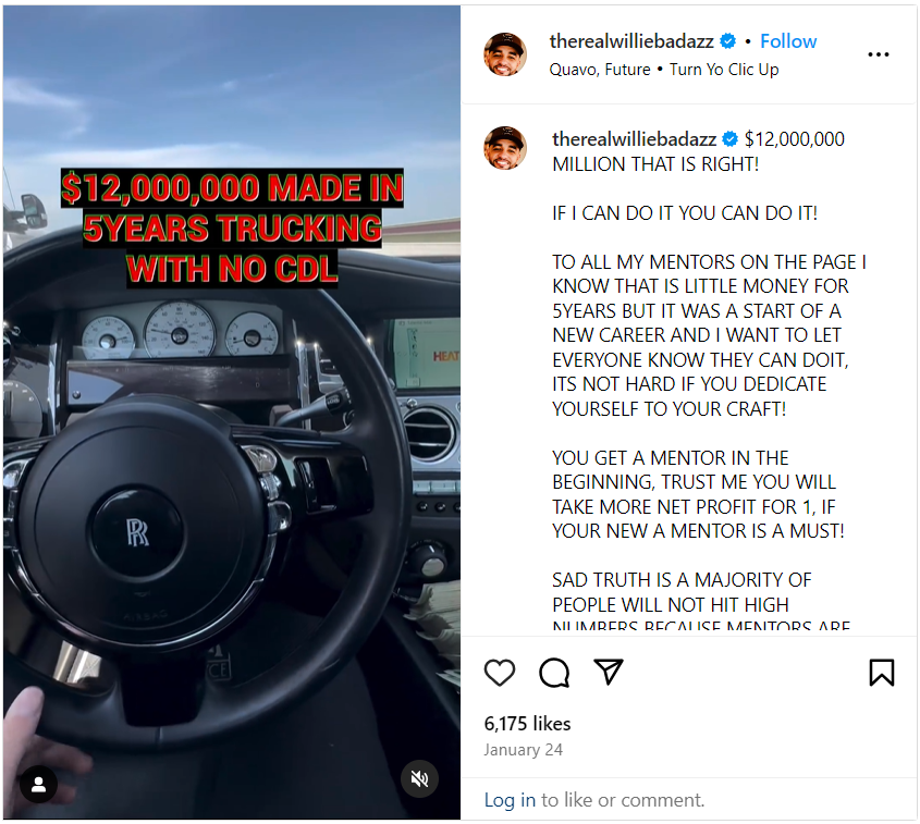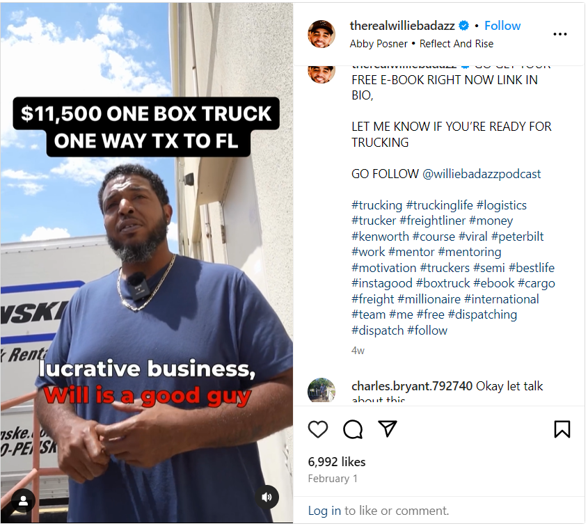 Now A founder in four lucrative ventures in the trucking and mechanical industry by the age of 32 and with a following base over a 160k on instagram, Willie prides himself on being an active consultant, thought leader and mentor to up-and-coming talent in the trucking industry.